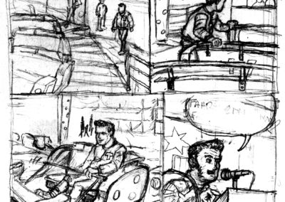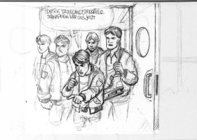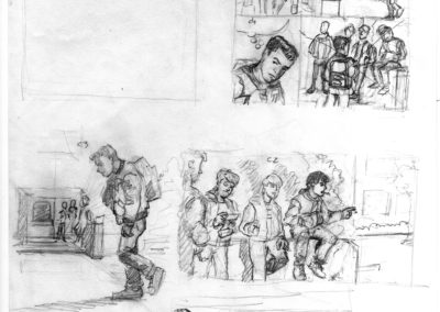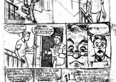 Skizzen und Storyboard aus der Originalausgabe, gezeichnet wurde in Deutschland, Österreich, Frankreich und Israel in den Jahren 2008 bis 20016. Mit Staedler Fallmienen Bleistift Mars Technico auf 190g/cm Talens Papier.