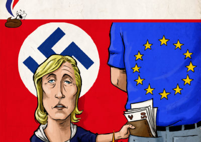 Marine Le Pen betrog über Jahre das Europaparlament, die Institution die sie am leibsten Abschaffen möchte. 2018 musste sie dann 300.000€ zürückzahlen, da ihre Mitarbeiter keine Parlamentsarbeit sondern Faschistische Propaganda betrieben haben. Die Front National wurde inzwischen zu Resamblement National umbenannt, den gleichen Namen hatte die französische Faschistische Pro Hitler Partei unter dem Vichy Regime.