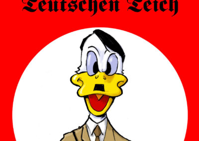 20.04.2014 Zu Führers Geburtstag wollte ich mit diesem Cartoon herausfinden ob meine Nachbarn in Hamburg Eimsbüttel mit dem WLAN Signal Sender Gleiwitz wirklich Nazis sind. Meine Nachbarn hatten mich bei der Hausverwaltung mehrfach in der Manier eines Blockwarts mit Protokollen Angezeigt. Einige Monate Später musste ich mich vor Gericht wegen diesem Cartoon erklähren. Ein Jahr später klebte ich das Poster an die Tür von Hitlers Realschule in Linz. Später wurde daraus die Social Media Fotoaktion #adolfduck