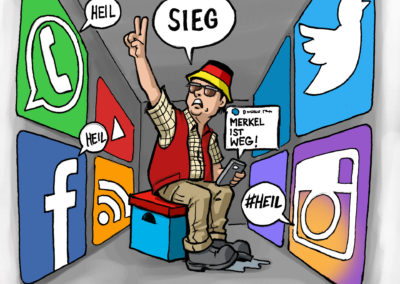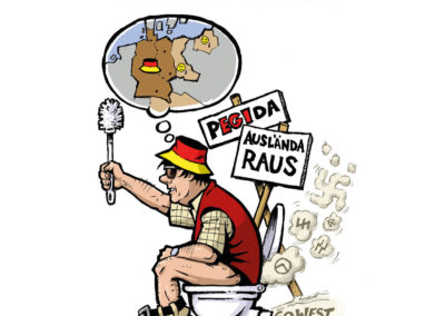 Nazis bekämpfen mit dem was sie nicht haben, das ist Humor geschweige denn einen Sinn für Satiere. Bereits 2012 hat Nils Oskamp dazu ein Konzept gemacht und beim Goethe Institut eingereicht. Mein erster gedrckter Cartoon gegen Rechts kommt aus dem Jahr 1997.