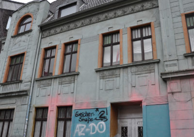 Dortmund Dorstfeld im Westen von Dortmund war früher ein Landgut, dann Bergarbeiter Siedlung der Zeche Dorstfeld. Viele Stahlarbeiter der Höschwerke wohnten hier in der Zeit der Industrialisierung. In den 70er Jahren wurde Die Universität Dortmund neben Dorstfeld auf das Platte Feld gesetzt und viele Mitarbeiter*innen der Uni und Studen*innen wohnten dann in Dorstfeld. Zu der Zeit hatte Dortmund Anfang der 80er Jahre eine Arbeitslosenquote von bis zu 29%. Die damalige Stadtregierung hatte etwas gegen das wilde Studenten-Kommunenleben und versuchte mit massiven Mitteln die Studenten aus verschiedenen Objekten zu verdrängen, in diese Leerstände sind dann die Neonazis eingezogen.